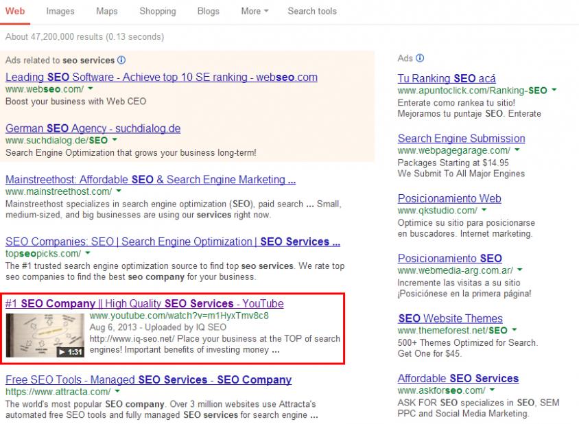 Podemos ver este resultado de búsqueda: #1 SEO Company || High Quality SEO Services - YouTube