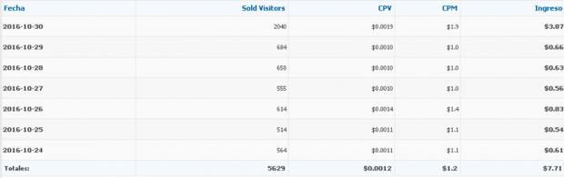 Estas son las ganancias de una semana usando este método con una cuenta en twitter de poco mas de 2000 Seguidores, como pueden ver tanto las visitas como las ganancias van en aumento. La subida es por el uso de otra cuenta de mas de 1500 seguidores un poco mas activa el dia de ayer.