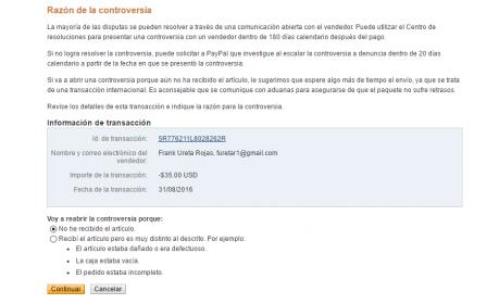 Vaya si que no tiene verguenza este tipo. que bueno que lo descubriste @maestrodellaves y gracias por quitarme el negativo. Ahora solo espero la resolucion de la disputa en paypal. Gracias @maestrodellaves y @SergioR por ayudarme :)