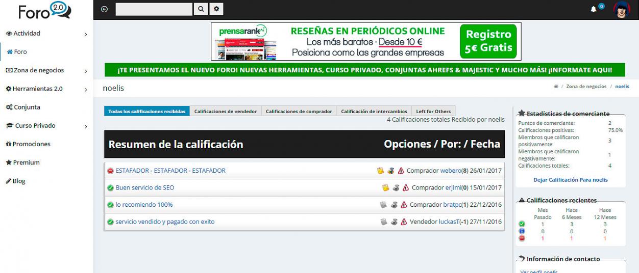 Tiene Positivo de usuario "erjimi" (que si analizamos el itrader de "erjimi" sale esto, que también es acusado de "estafador"