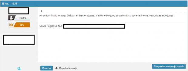 Por cierto, no hace falta que tapes el nick en la captura... si se ve que es este: https://foro20.com/members/s1983-26946/ misma firma y demás, el usuario al que socio se lo vendió y el usuario con otra cuenta, ya que antes era staffwebs, casualmente baneado de foro20: https://foro20.com/members/staffwebs-18186/