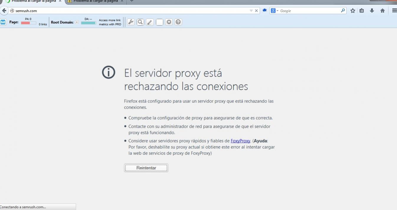 Cuando pase esto pruebas Google, o cualquier otra página que sea casi imposible que deje de funcionar. Si también falla se avisa aquí y por MP a mi, para no duplicar Mps.@lekroz me vuelve a dar el mismo error con el proxy, tanto en Semrush como en Ahrefs...Le pasa a alguien más??