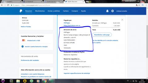 La captura es muy pequeña no se puede leer, pero ya te adelanto que estas equivocado, el usuario que tu dices no es, es el que dice @TitoGsm , que ademas coincide con el email de paypal, @dyedhck .Buenas, el usuario es chepotelatino (https://foro20.com/members/chepotelatino-5930/), hice negocios con el y me pago con esa direccion de envio 14USD, lo malo es que no me quiere pagar 26USD que me sigue debiendo, sale con cosas de que se fue con su novia, que esta de viaje,etc pone escusas y no me paga, si no lo hace hasta mañana procedo a calificarlo negativo. Dejo capturas del pago que me hiso con la direccion de envio que pones